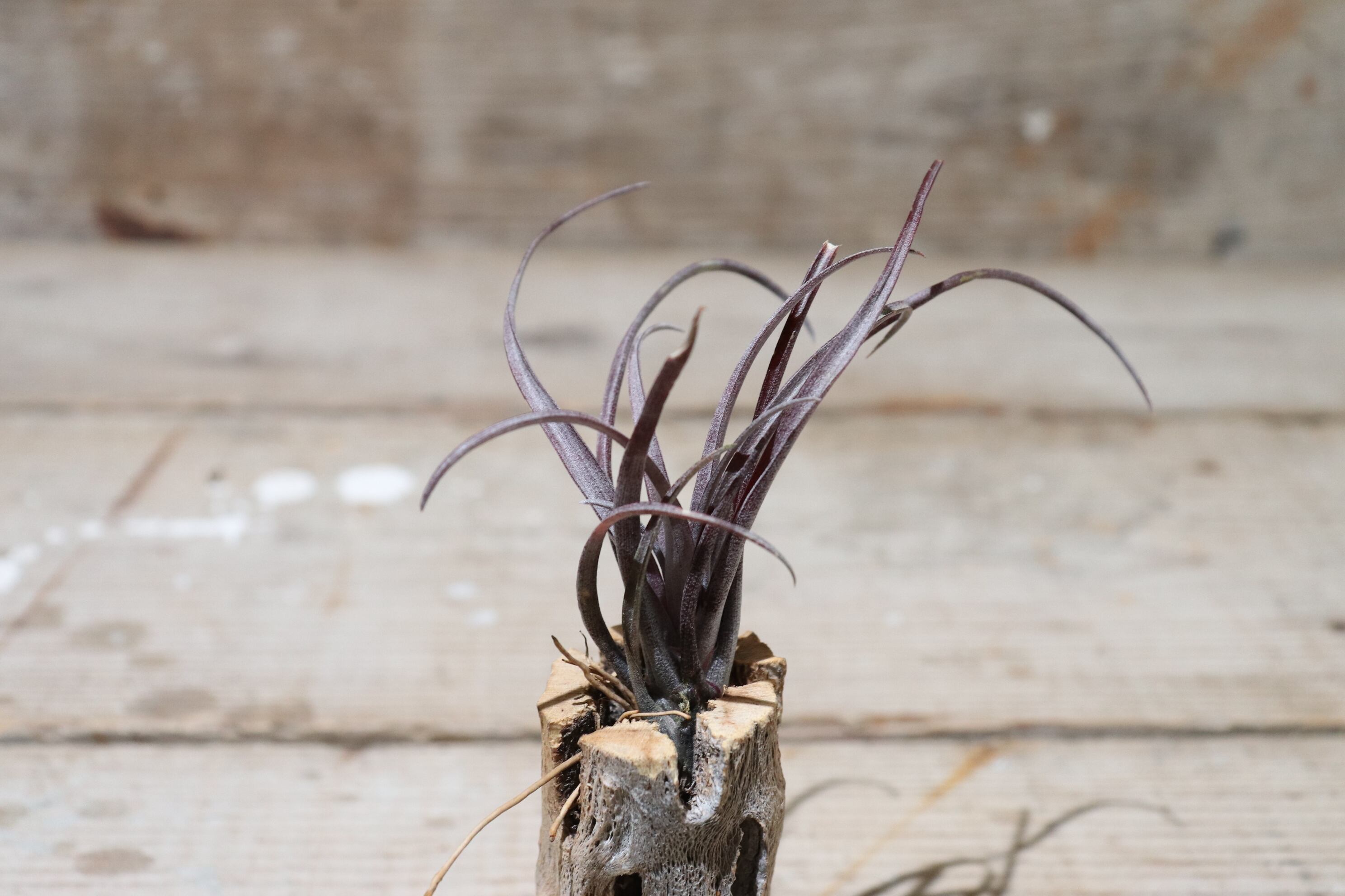 しっかり光を当てれば、年間を通してあずき色になる珍しいティランジア。
