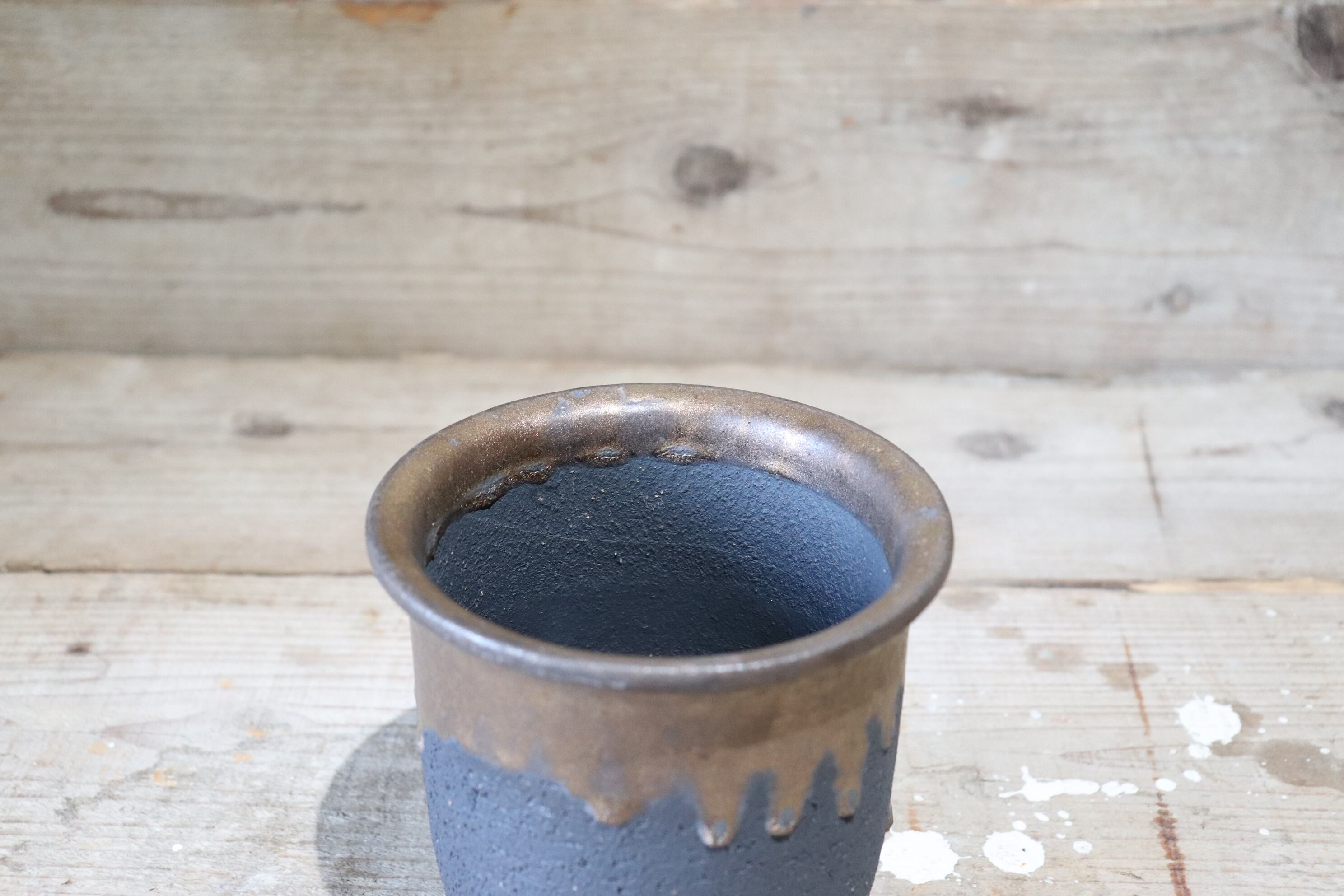 鉢や角度によって違う表情の金泥と、器の青黒い色がとてもマッチしています。