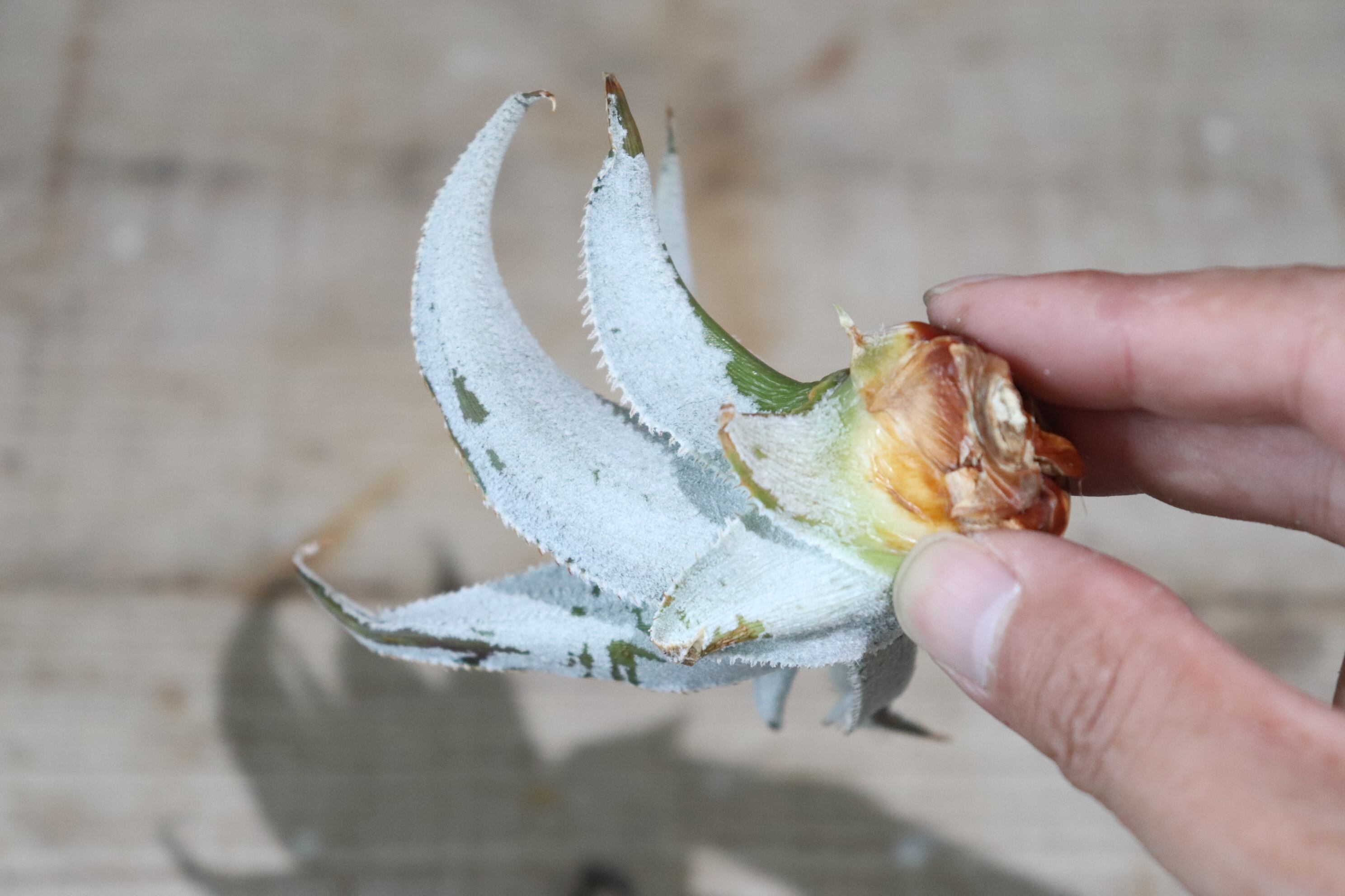 水やりはトリコームが剥がれないように、葉に直接与えず株元に水をやります。